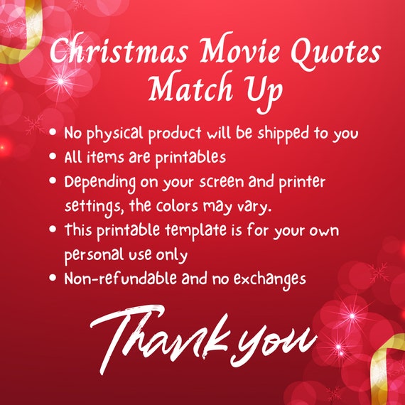 Christmas Movie Quotes Match Up Christmas Movie Trivia Game Etsy