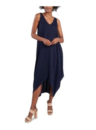 Msk Womens New 129 Sleeveless Sheath Flutter Maxi Dress 6 S Small Navy Blue Nwt Ebay